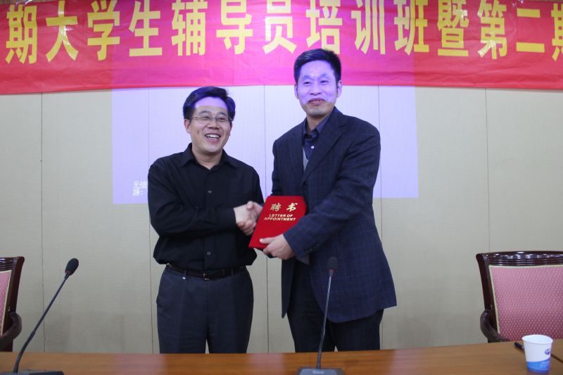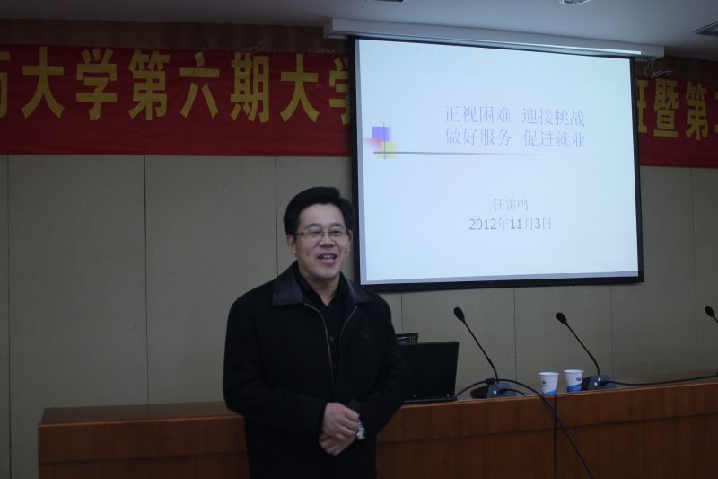 校党委副书记、副校长王长青教授代表学校聘任省招就中心任雷鸣主任为学校就业创业导师