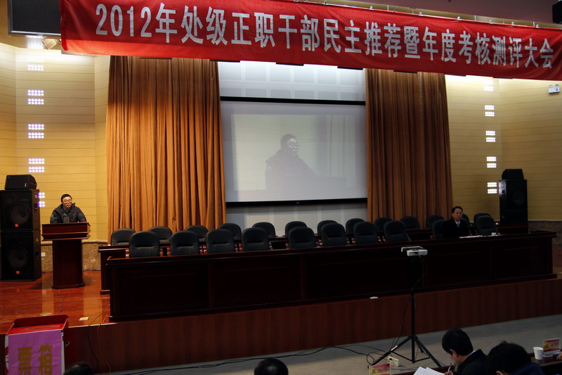 1210日下午,我校正处职岗位民主推荐暨年度考核测评大会在丰盛楼报告厅举行。校领导,校党委委员,校纪委委员,中层领导干部,各级人大代表、政协委员,各民主党派负责人,机关科级干部代表、教师代表共230余人参加了大会。