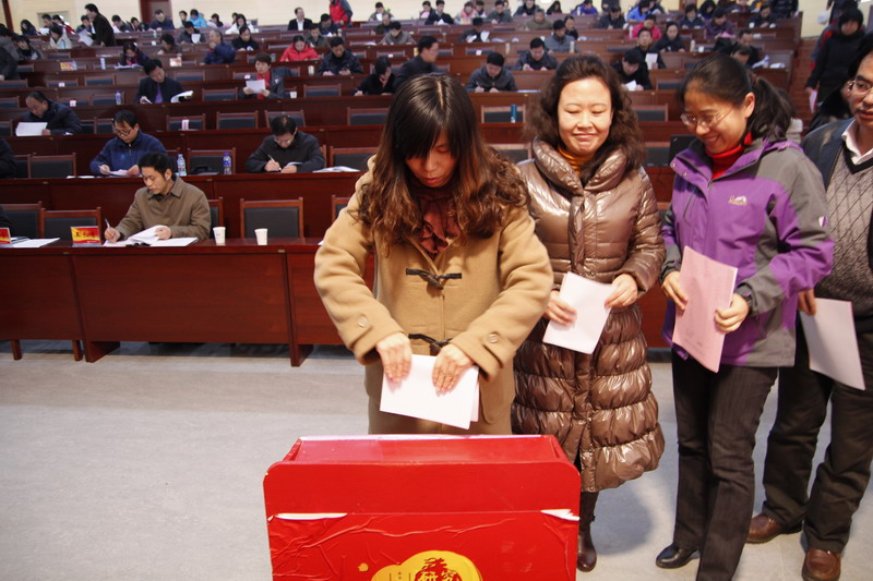 在近7个小时的时间里,101位处级干部和参加正处职竞聘的专业技术人员进行了2012年度工作述职,参加竞聘的现任正处职干部阐述了对竞聘岗位的工作思路和任期工作目标。随后全体参会人员对本次干部竞聘进行民主推荐,并对所有中层干部进行2012年度考核的校级测评、同级测评和服务对象测评。