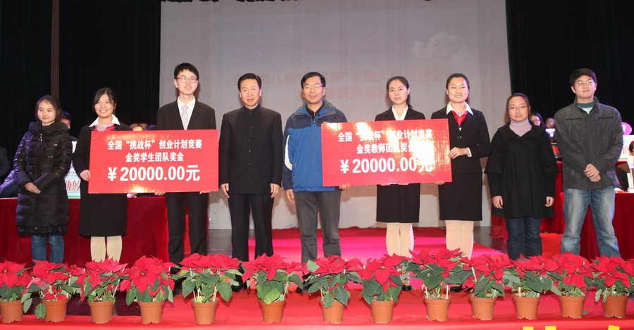2012年11月29日,由共青团中央、中国科协、教育部、全国学联共同主办的在上海同济大学举行的第八届“挑战杯”中国大学生创业计划竞赛终审决赛中,我校《天泽医药科技有限责任公司》创业项目获得金奖及“评委推荐特色奖”、《江苏福瑞祥老年护理服务有限责任公司》创业项目获得铜奖,学校获得“优秀组织奖”,取得我校在“挑战杯”创业计划竞赛历史最好成绩。学校领导充分肯定相关部门和全体参赛师生在“挑战杯”竞赛中所取得的成绩和付出的努力,对我校作品在“挑战杯”创业计划竞赛中首次斩获金奖,填补了我校参加“挑战杯”中国大学生创业计划竞赛金奖的空白表示由衷的喜悦,希望指导老师和同学们在取得突破成绩的基础上,总结经验,勤勉工作,争取在大学生科技创新工作上取得更大的成绩。校党委陈涤平教授书记、王长青副书记、副校长分别为获得金奖和铜奖的《天泽医药科技有限责任公司》和《江苏福瑞祥老年护理服务有限责任公司》创业项目团队颁发奖状、证书和奖金。