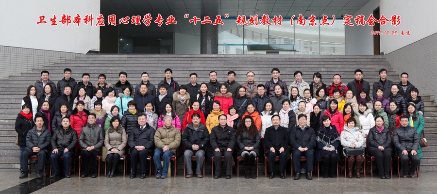 卫生部“十二五”规划教材暨全国高等学校第二轮应用心理学专业教材定稿会于2012年12月27-30日在我校召开。全国50余所高校的70位专家与人民卫生出版社的领导、编辑出席会议。本套教材共有25部,分别在长沙市、无锡市、南京市召开定稿会,心理学院有14位教师和一位在读博士生共15人参加了该套教材的编写。参加南京点定稿会的共有9本教材,即华东师范大学郭秀艳教授《实验心理学》;吉林医药学院罗正里教授《心理学实验指导》;南京师范大学郭本禹教授《西方心理学史》;上海海洋大学马莹教授《发展心理学》;南京师范大学乔建中教授《教育心理学》;哈尔滨医科大学杨艳杰教授《生理心理学》;潍坊医学院孙宏伟教授《心理健康教育学》。我校杜文东教授《心理学基础》;我校李荐中教授《性心理学》。