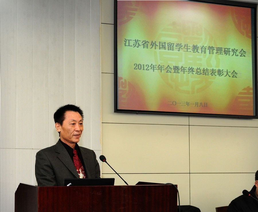 南京中医药大学校长、江苏省外国留学生教育管理研究会会长吴勉华做了2012年研究会工作总结报告。省教育厅国际合作与交流处袁靖宇处长回顾盘点了2012年江苏省来华留学生的整体工作,并对2013年的工作作了部署和展望;省外办领事专家处钱根清副处长、省公安厅出入境管理总队崔广跃副总队长、省出入境检验检疫局国际旅行卫生保健中心钟志健主任和南京市公安局出入境管理支队王兴荣大队长分别对2012年全省各高校来华留学生管理工作作了总结,并对今后工作提出新的要求。
