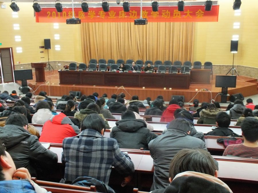 第一临床医学院汪悦院长从专业角度对“临床一体化教学”的内涵、意义和要求进行了详细地解读,他希望同学们多看、多听、多学习,积极、主动、做个有心人,并祝愿同学们满载而归。基础医学院孙新新副书记长从强化安全、树立思想、历练提升、保持沟通四个方面,对同学们的床边教学提出了具体的要求与希望。上一届床边教学学长、09级中西医临床1班的王涵同学就床边教学过程中的学习形式、重点内容、友情提醒等方面与在场的同学们进行交流,希望用自己的亲身经历和体会来帮助学弟学妹们尽快适应床边教学,取得更大的收获。基础、一临学工办的老师最后交代了寒假前后的具体事项并进行了答疑。