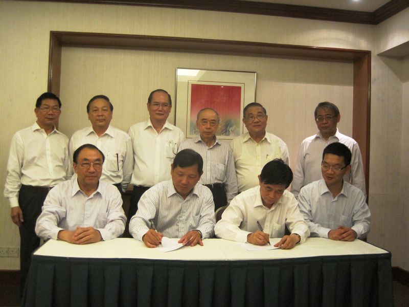 吴勉华校长与新加坡中医学院董事会主席黄种钦(前排左二)签署两校合作协议