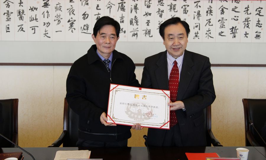 吴勉华校长向樊代明院士(右一)授荣誉教授聘书