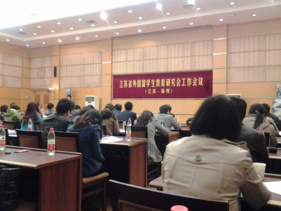 329,由我校主持的江苏省外国留学生教育管理研究会2013年一季度工作会议在扬州大学召开。中国高等教育学会外国留学生教育管理分会贺向民秘书长莅临大会,江苏省教育厅、省外事办公室、省公安厅、省边检及省内40多所高校主管来华留学生工作的近百位留管干部出席了会议。江苏省外国留学生教育管理研究会副会长、我校国际教育学院院长王中越主持会议。