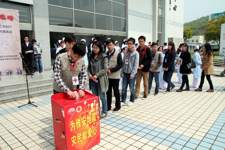 芦山强震牵动了亿万中国人民的心,为了帮助灾区同胞重建美好家园,在校红十字会的倡议下,全校师生立刻行动起来,伸出热情援手,用实际行动向灾区同胞送去温暖。422,学校发出向四川地震灾区捐款的倡议书。活动一开始,就受到了全校师生的高度关注和广泛参与,无论是年迈的老教授,还是平时省吃俭用的贫困学子,大家纷纷慷慨解囊,为抗震救灾贡献一份绵薄之力。