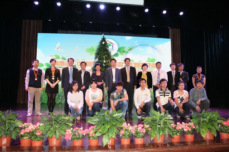 “回眸成长足迹”篇章中,《青春·向上》的VCR以“活力点燃青春”、“青春孕育梦想”、“梦想照亮未来”三个部分诠释了南中医青年传承医德仁术的良言明训,体现了南中医学子积极向上的精神风貌。随着学校“五四”先进集体和个人名单的揭晓,万闻华书记、姜东同志和学校领导分别为获奖集体和个人颁奖。“分享成长感悟”中,视频《简笔人生》以简洁的言语勾勒出访谈嘉宾不简单的人生,展现了优秀青年代表、中国自强之星孟凡旺的奋斗历程、“五四”青年奖章获得者胡晨骏老师助力青年学生实现青春梦想的质朴愿望,以及标兵团支部中西临床七年制09级2班团支部的支部风采。孟凡旺的“很多事情并不是因为有希望才去坚持,而是因为坚持才有了希望”展示了他在青春道路上的坚持,团支书周静洁同学的“设计活动,要从同学中来,到同学中去”分享了自己作为团支部骨干对搞好团支部活动心得,胡晨骏老师的“尊重选择,做自己喜爱的事情”流露了他对教学事业的热爱和真诚,这些言语使大家感受到了莘莘学子的青春梦想和奋斗不熄、代代传承的五四精神。“助力成长体验”环节中的《青春志 中国梦》视频选取普通团员青年、西部计划志愿者陈晓明、学校女子国旗班旗手这三个青年典型展示了杏林学子成长成才的青春梦想和伟大复兴的中国梦想。