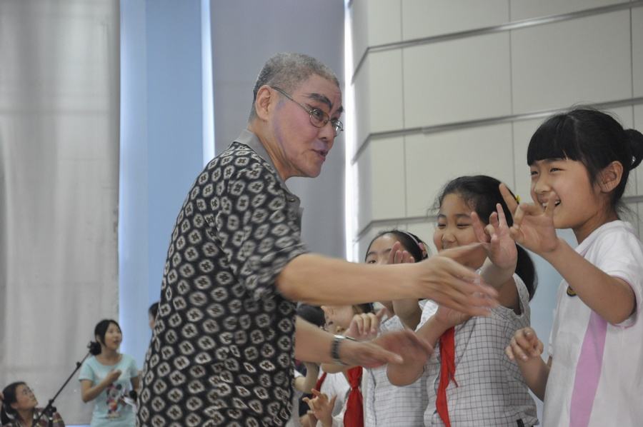 京剧社指导韩俊鸣老师现场指导小学生们身段