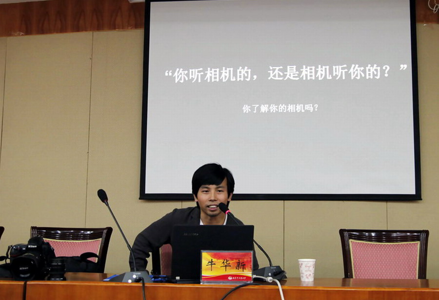 在两个多小时的讲座中,牛华新先生分析了胶片相机与数码相机各自的优势,重点普及了单反相机的相关知识,并从专业的视角,用通俗易懂的语言为现场听众讲述了摄影过程中如何运用取景、白平衡、对焦、测光、曝光(光圈、快门、感光度)以及后期处理等技巧使画面更加精炼、主题更加突出。牛华新先生还在现场对我校杏雨网的新闻图片进行了点评,使大家受益匪浅。讲座结束后,牛华新先生还与现场听众进行了互动和深入的交流。