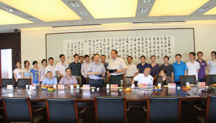 段金廒副校长对赵步长教授一行的到来表示欢迎,并对学校以及江苏省中药资源产业化过程协同创新中心的建设背景与意义、发展重点、研究方向与策略进行了说明。赵步长教授详细介绍了步长制药集团的发展历史和药物研究成果,以及企业的进一步发展方向和需要解决的科学问题。双方就中药注射剂安全性评价、中药制药过程中废弃物资源化利用等方面进行了深入讨论与交流。双方签订了长期战略合作关系备忘录,并就“丹红注射液临床联合用药不良反应及配伍禁忌研究”、“三七制药过程废弃物资源化利用”等项目签署了研究实施计划。随后,赵步长教授一行参观了我校唐仲英科技楼,并与唐宗湘教授和朱冰梅教授两位江苏省特聘教授进行了交流。
