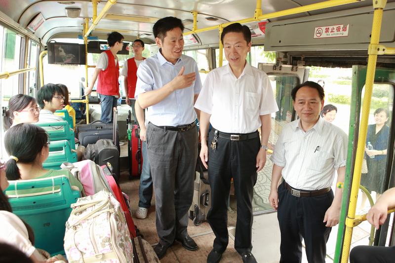 各学院党政领导、校学生工作领导小组成员、各毕业班班主任、专职学工干部、学生处和团委的老师,以及众多的学生社团和校学生会的志愿者早早就来到了大学生活动中心广场,在学校组织的送站车辆之间穿梭忙碌,为朝夕相处的广大毕业生送行,为毕业生送上母校的关心和祝福。
