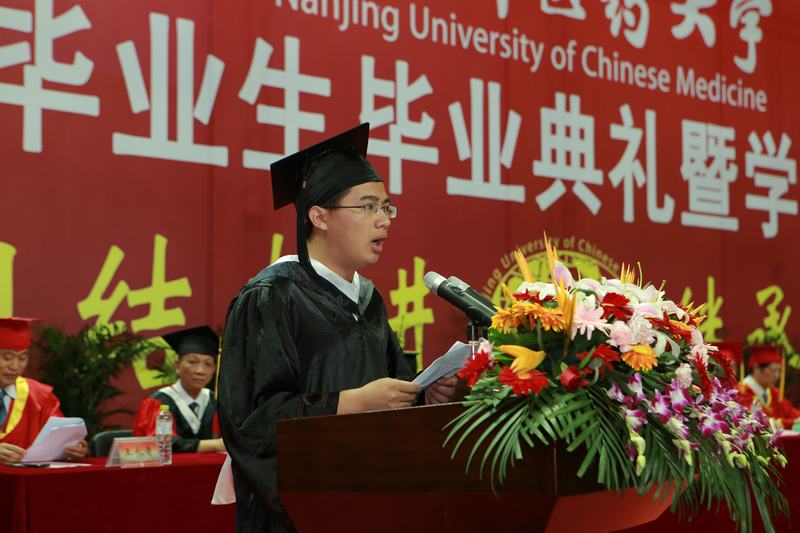 “深深母校情,悠悠学子心”。第一临床医学院杨柳同学和国际教育学院金知爱同学代表全体2013届本科毕业生作了感人肺腑的发言。他们在表达对母校感激和眷恋的同时,立誓将秉承“团结奋进,继承创新”的校风,恪守“自信、敬业”的校训,努力弘扬“仁德、仁术、仁人”精神,为中医药事业而努力奋斗,为人类的健康不断造福。杰出校友代表、我校客座教授谢恬博士深情回忆了在母校读书的情景,并用自身成长的经历寄语学弟学妹,毕业典礼不是学习生涯的结束,而是全新学习的开始,踏入社会之后,大家要发挥在母校所学,不断进取,力争在各行各业做出出色成绩。