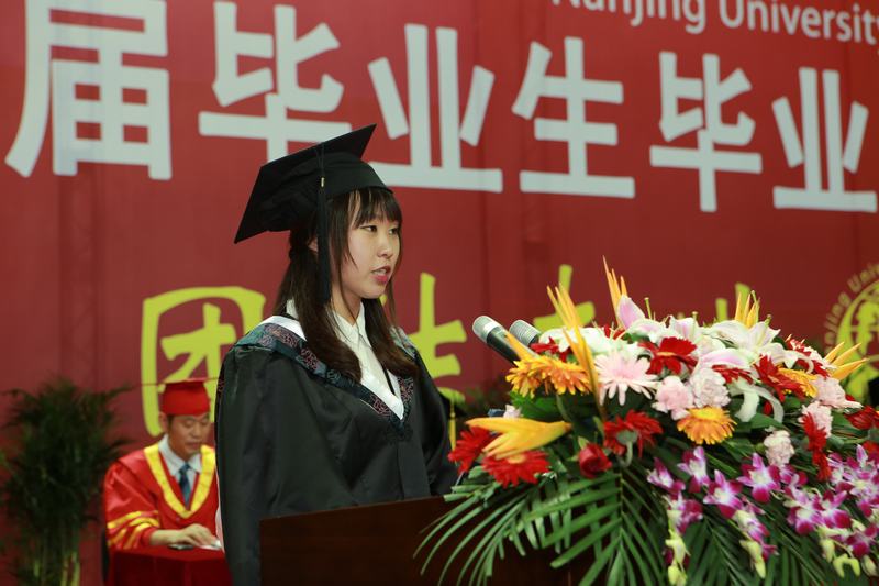 毕业生代表国际教育学院韩国籍金知爱同学发言