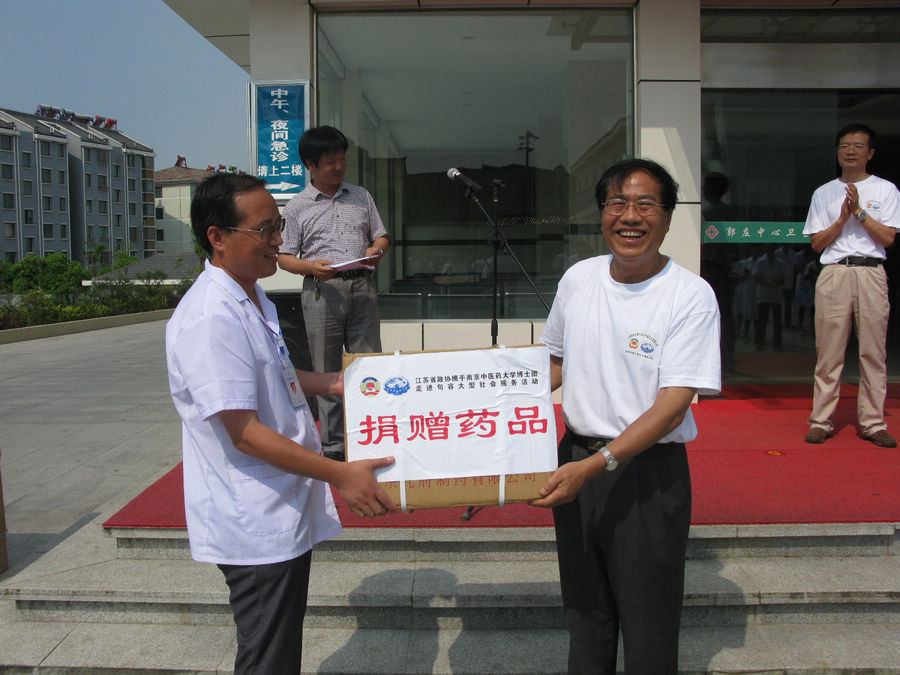 由省政协医卫体育委员会副主任、南京中医药大学原党委书记黄成惠带队的博士团小分队还深入句容市郭庄卫生院,捐赠了九箱中成药,并结合病历对基层医院的医生进行了技能培训,使基层医生受益匪浅。全国政协委员、养生专家王旭东教授则针对夏季养生、中医保健、食疗与药膳等话题面向广大市民开展了一场养生讲座。