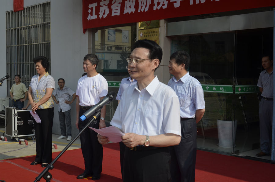 江苏省政协副主席何权、江苏省十届政协副秘书长、研究室主任程玉松、江苏省政府副秘书长、省政府办公厅主任、江苏省政协医卫体育委员会主任李一宁、南京中医药大学校长吴勉华、句容市委书记尹卫东、省政协医卫体育委员会副主任黄成惠、省政协医卫体育委员会专职副主任刘卫华、句容市副市长王华、句容市政协主席孙昌桂等出席了启动仪式。省政协副主席何权在仪式上做了重要讲话,他高度赞扬此次活动是在党的群众路线教育实践活动开展以来,深入贯彻习近平总书记“民生幸福工程”,为实现中华民族伟大复兴中国梦而努力奋斗的具体体现。启动仪式后何主席一行走进诊室慰问义诊专家,对专家们的辛勤工作和对社会医疗卫生事业、民生幸福工程作出的巨大贡献表示衷心的感谢。
