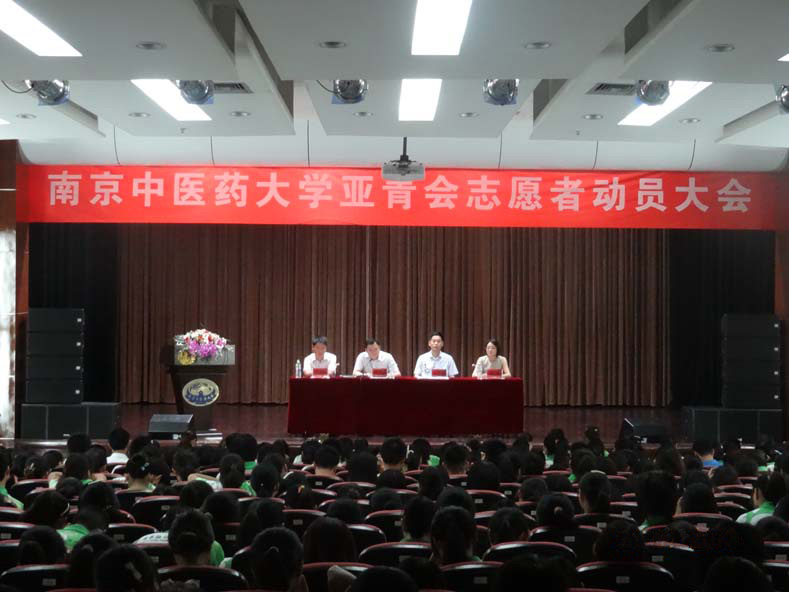 722日上午,南京中医药大学亚青会志愿者动员大会在大学生活动中心小剧场隆重召开,标志着我校亚青会志愿者培训和赛会服务进入最后冲刺阶段。校党委王长青副书记、副校长,亚青会鼓楼赛区负责人、五台山体育中心亚青赛会场馆副主任、南京团市委戴修成副书记,南京亚青会五台山体育场馆志愿者经理、南京团市委志工部徐磊老师,校团委杨羽书记、姜劲松副书记,各志愿者班级班主任及571名亚青志愿者参加了动员大会。