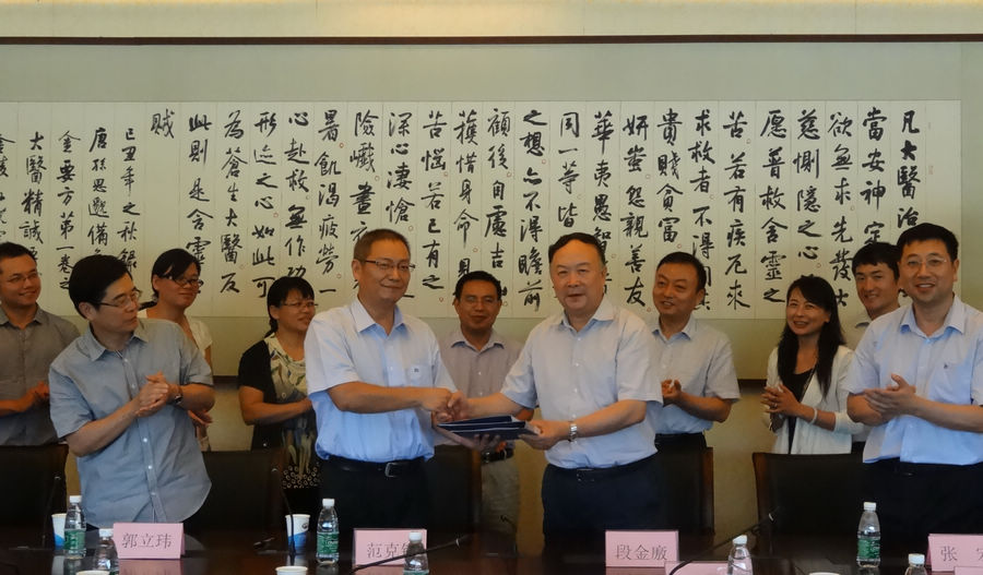段金廒副校长和范克银总裁共同签署了合作协议,与会双方就应对中药制药工业对膜科学技术的重大需求,着力攻克中药膜分离技术产业化的关键技术瓶颈,努力解决中药与天然药物生产中的提取、分离、污水处理等一体化的膜工程技术问题和创新大学与企业的合作模式,解决我国中药产业实验室产业化衔接薄弱的问题,探索可激发科研和产业双向活力的产学研合作体制与运行机制等合作方向进行了沟通和交流。