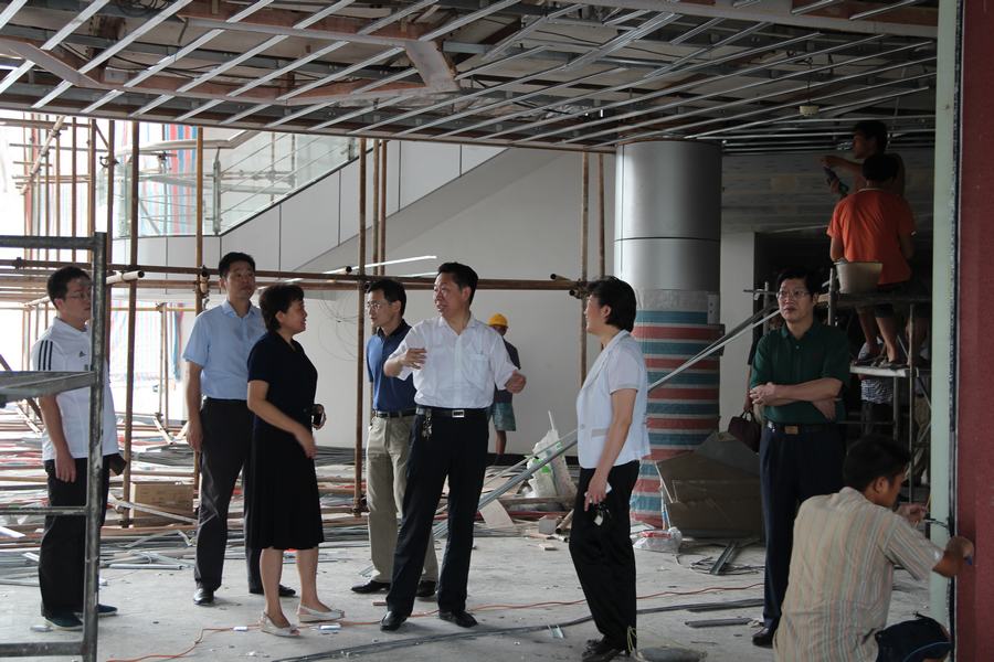 830上午,我校校领导带领党办、校办、宣传部、学工处、保卫处、后勤处、基建处等部门主要负责人,先后深入走访了敬文图书馆、第一食堂、第二食堂、新生学生宿舍、国际交流中心和青年教工公寓建设工地、体育馆、基础医学院和心理学院,检查暑期重点建设项目、各单位新学期开学情况及迎新准备工作。