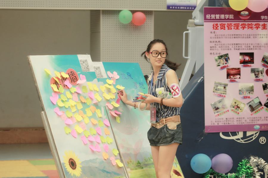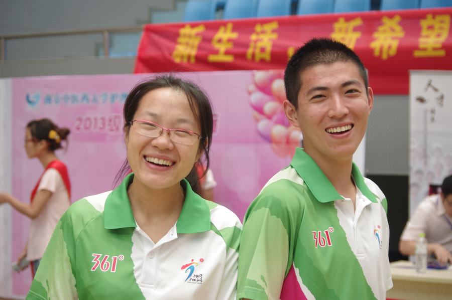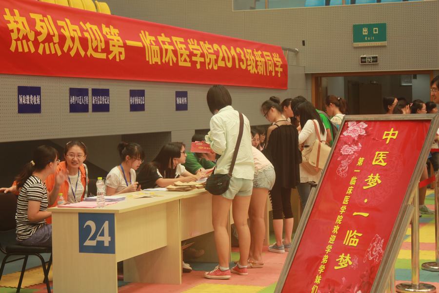 各学院精心准备的迎新工作,让新生第一时间感受到学院的温暖:“同一枚院徽,同一家人”,第二临床医学院首次将院徽做为新生见面礼,体育馆外,服务站的志愿者们手法娴熟,为舟车劳顿的新生和家长提供推拿保健服务;经贸管理学院为新生贴上了紫色心形纸贴,让负责接待的老师与志愿者能够一眼认出“自己家的小伙伴”,先锋社组成的“党员服务站”也在第一时间深入新生宿舍进行指导;心理学院辅导员和班主任到现场迎接新生,新生报到成为温馨的师生见面会,从而帮助新生学会如何更快更好地融入大学生活;外国语学院为每个宿舍安排了生活安全指导员,指导新生日常生活中如何防盗防骗;在药学院休息区,学生和家长可以尝一尝药茶、猜一猜灯谜,通过中药知识宣传展板、实物盆景了解传统中药知识;信息技术学院实行新、老生结对子,帮助新生完成学期选课,引导他们顺利度过适应期;基础医学院设立党员流动服务岗、采用学长导航制,党员入宿舍、学长进班级,全面指导新生的学习和生活;第一临床医学院安排党员学生走访新生宿舍,并为学弟学妹们带去西瓜等慰问品;写满期望的新生许愿墙、辅导员和学业指导老师现场双指导,学业指导老师在报到现场为学生的学习问题解疑释惑,成为护理学院的新亮点。