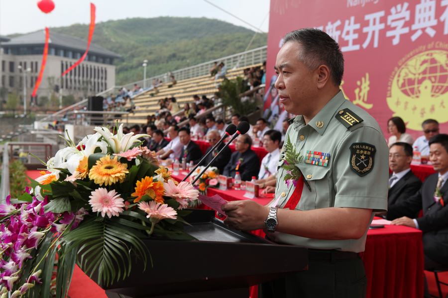 九月金陵,秋高气爽,丹桂飘香。922日上午,我校仙林校区军旗招展,2013级学子们身着戎装、精神抖擞,在经历了半个多月的军训洗礼后,迎来了他们的开学典礼暨军训汇报表演。学校领导、离退休老领导代表、解放军理工大学国防工程学院首长、有关职能部门及各学院领导在主席台就座位。全体中层干部、专职学工干部、学业指导老师、教师代表、全体2013级本科新生和部分新生家长出席。开学典礼暨军训汇报表演由校党委副书记、副校长王长青教授主持。