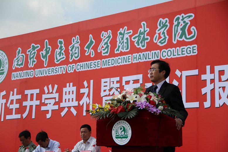 南京中医药大学博士生导师马健教授作为教师代表发言,他表示广大教师将尽一切力量帮助广大同学完成自己的学业,希望广大新生能够珍惜来之不易的学习机会,勤奋学习,尽快适应大学的学习和生活方式,为自己的未来打下坚实基础。翰林学院学生会主席景波、2013级药学专业吴丽莉先后代表老生和新生发言。
