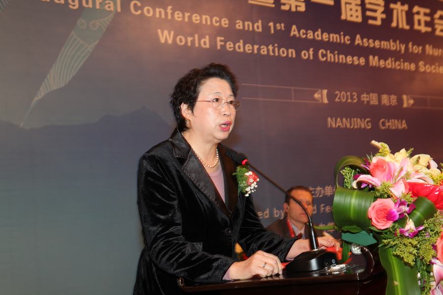 世界中医药学会联合会主席、原卫生部副部长、国家中医药管理局局长佘靖,国家中医药管理局医政司副司长杨龙会,江苏省卫生厅副厅长、省中医药管理局局长陈亦江,中华护理学会理事长李秀华,中华护理学会副理事长、南丁格尔奖获得者姜小鹰,美国洛杉矶加州大学护理学院副院长Adey Nyamathi,世界中医药学会联合会学术部主任邹建华等领导和专家出席了大会开幕式。吴勉华校长代表学校致欢迎辞。