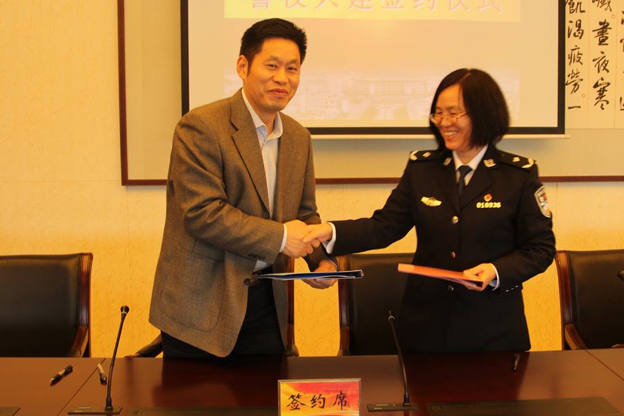 沈满所长宣读了南京中医药大学与栖霞区公安分局“警校共建”协议书。王长青副书记、副校长和蒋跃玲政委分别代表双方在协议书上签字。按照协议,双方建立了警校共建工作例会制度;栖霞公安分局为警校共建工作配备必要的警用器材和装备,对参与警校共建做出贡献的警官进行嘉奖或表彰;学校在西大门设置仙林派出所警务室,按公安机关统一要求设置警用标志(牌)等。