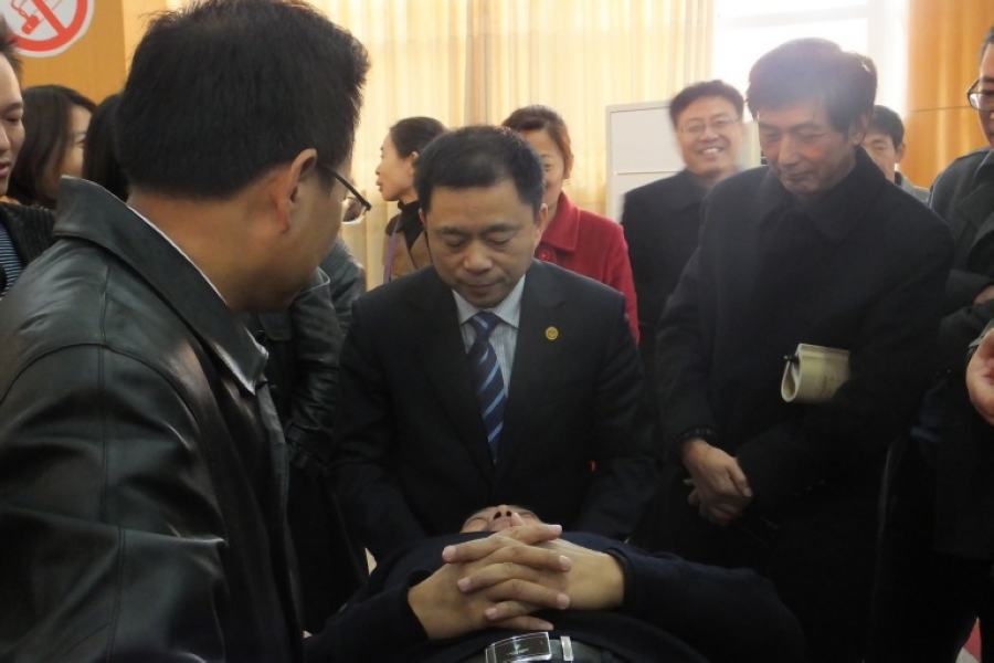 王中林副教授为教师进行颈腰椎病的预防及保健示范