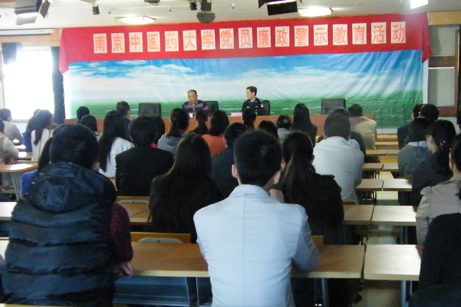 “四个一”即:一场廉洁修身录像、一次“高墙之内”行、一场血泪忏悔报告、一顿“在押犯”的日常菜式。首先,两院全体教师、学生党员在B2-201观看群众路线教育活动专题片《四风之害》,《四风之害》从近几年来大量违纪党员领导干部和典型案件入手,深刻分析了形式主义、官僚主义、享乐主义、奢靡之风产生的根源及其对党和事业的重大危害,从而警示广大党员要牢记“四风”之害,禁“四风”之欲,发扬和践行党的群众路线,作为民务实清廉的表率。随后大家前往江苏省警示教育基地——龙潭监狱进行参观,并召开警示教育大会,会议由药学院王海波副书记主持。在警示教育大会上,龙潭监狱方先权副监狱长介绍了监狱的情况。两名在押服刑人员进行了现身说法,他们从高学历、高职务的高教精英,沦落为高墙内囚犯的经历,深深震撼了在场的每一位党员。药学院党委王海波书记指出,广大党员要充分认识拒腐防变的重要性,并从坚定理想信念、树立正确的权力观、严格自律、自觉接受监督等方面告诫大家要努力增强拒腐防变的能力。会议结束后,部分代表参观了服刑人员的食堂。