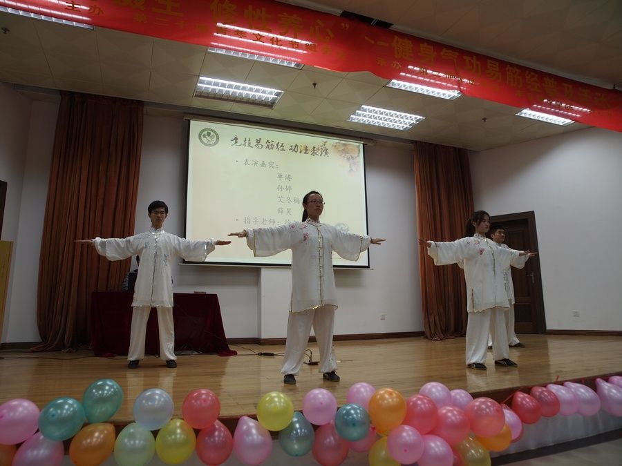 讲座伊始,养心社四位同学表演了健身气功-易筋经竞赛套路,精彩的表演博得了台下阵阵欢呼与掌声。顾一煌教授从“什么是气功”、“健身气功与医疗气功”、“易筋经功法”等多个角度全方位地为大家介绍了健身气功易筋经。易筋经自古就是流传甚广一种传统健身功法,外练易经、内练洗髓,集合佛道儒三家之长(佛家达摩祖师首创,道家养生术语阐释,儒家守中思想内涵),流传百年至今,在当今不仅成为中国四大健身气功之首,更成为了一门独立的气功流派。顾院长重点介绍了易筋经中的“韦陀献杵”、“倒拽九牛尾”等几势,从中医经络、道教养生等角度诠释了易筋经的养生意义及注意事项。多样的演讲方式、幽默风趣的演讲风格、引人入胜的演讲内容,使在场的所有观众都跃跃欲试。讲座持续了近两小时,让在座同学们对易筋经有了更深的了解,对祖国的传统气功文化有更浓厚的兴趣。