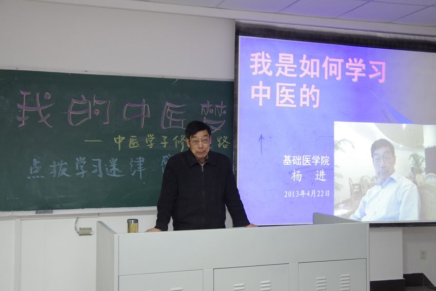 422晚,由第二十届青年文化节组委会主办,基础医学院学生会承办的“我的中医梦——杏林学子修身之路”主题讲座在B5-301教室成功举办。讲座邀请了国家级教学名师杨进教授主讲。