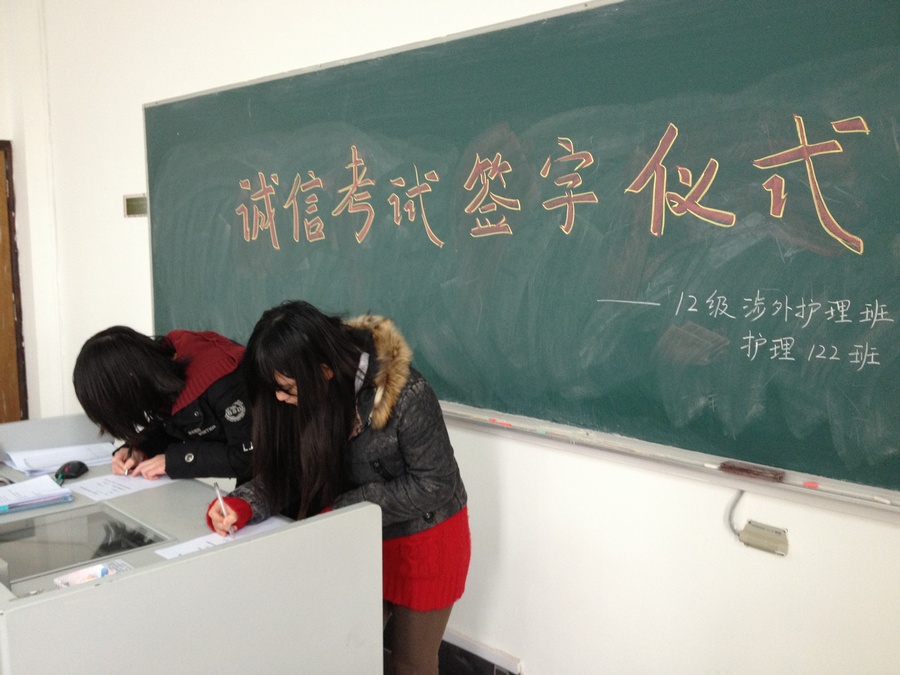 自护理学院2009涉外护理班成功实行三学期无人监考以来,收获了良好的阶段性成果,在护理学院学生中起到良好的引领和示范作用。本学期学院2012涉外护理班、2012护理2班和2012护理5班三个班级再次向学校申请,参加本学期四门课程的无人监考,推进诚信教育在学院的影响力。