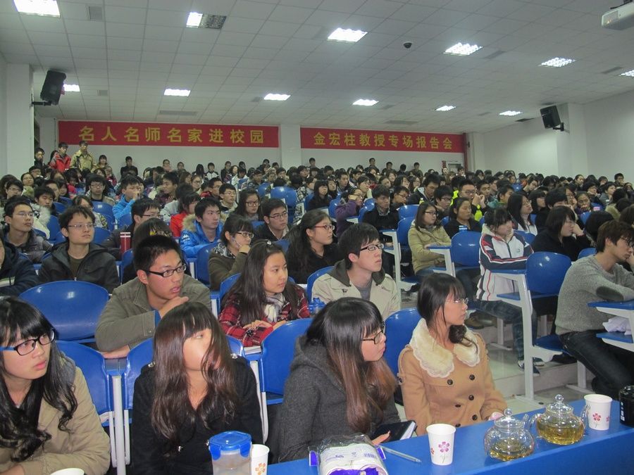 讲座伊始,金教授不失幽默的说道:“今天,我是来说故事的”。一幅幅美丽的图片,即是一个个动人的中医故事。金教授将中医学术知识与文学创作结合起来,把自己亲身经历的在英国、意大利、法国、瑞士等多国的海外行医及讲学的故事,以优美抒情的文学语言向大家娓娓道来,向广大学子展示了中医的魅力与文学的精美。讲座中,300余人的阶梯教室座无虚席、掌声不断,金教授以渊博的知识,丰富的阅历,精湛的文化,精彩的演讲深受到同学们的欢迎和好评。精彩的讲座,让同学们进一步增强了学习中医的热情,加深了对中医理论和临床实践的理解和认识,增强了人文素养。
