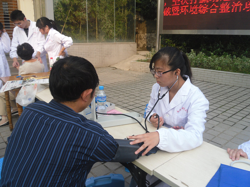 1027下午,基础医学院分团委的18名志愿者身着白大褂来到秦淮区龙苑新寓开展以“尊老敬老,共享幸福”为主题的义诊活动。