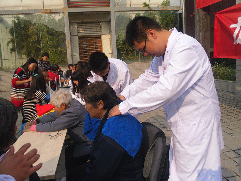 义诊小队分为量血压、推拿、艾灸、刮痧四个小组,每个小组的成员都有不少义诊经验,因此在下午为时2小时的义诊中同学们的技术受到了老人们的一致好评。量血压组的同学在为老人们量血压后还特地叮嘱老人们:“少吃些肉类、多食蔬菜水果,血压就能控制在正常水平。”;推拿组的同学针对老年人常见的不适部位,如腰背部、颈部进行了重点推拿;艾灸则多针对腿部足三里、三阴交、手部合谷穴,老人们纷纷尝试并就自己的健康情况和同学们进行讨论;而刮痧组安排在龙苑新寓的活动室内,既保证了刮痧所要求的环境条件,也保证了刮痧的疗效。
