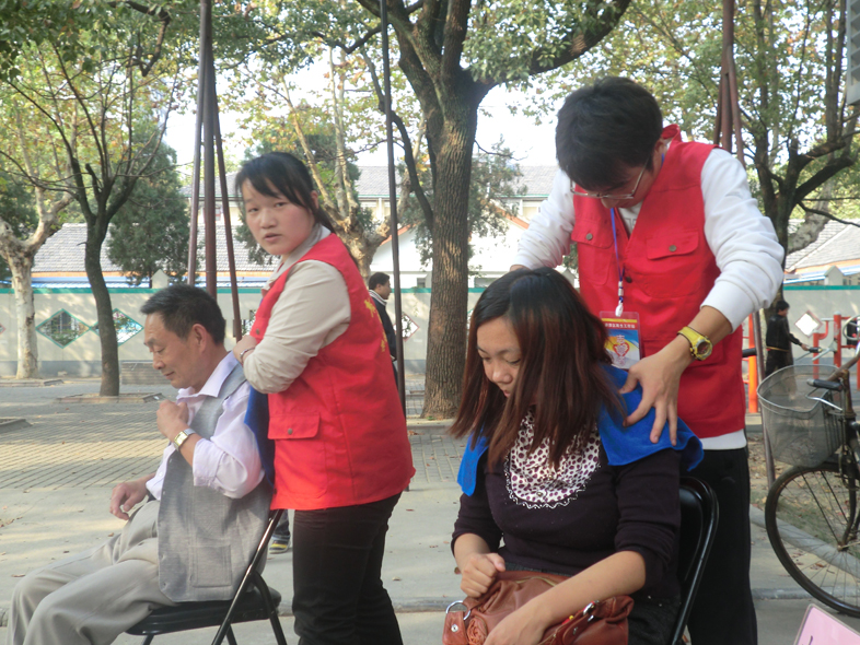 20121020下午,基础医学院志愿者一行来到中华门街道双桥新村社区开展为期半天的志愿服务活动,此次活动受到了秦淮区人民政府的高度重视,秦淮区委书记郑跃奇、民生工作站工作组成员等亲临现场,此次活动获得了社区居民以及秦淮区领导的一致好评。