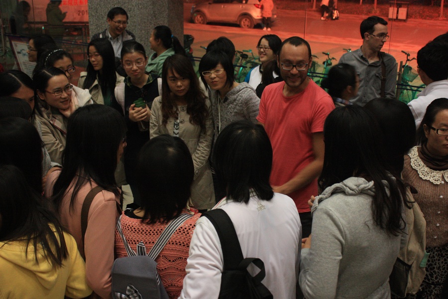 上周四“英语角”首次活动在大学生活动中心一楼大厅开展。此次活动吸引了各院系学生的积极参与,活动现场气氛热烈,所聊话题涉及生活的各个方面,现场不时传出阵阵笑声。外国语学院的全体教研室主任、外籍教师以及国际教育学院的部分留学生积极参加了本次英语角活动。
