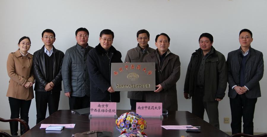 黄桂成副校长代表学校与南京市中西医结合医院刘万里院长签订协议书并授牌