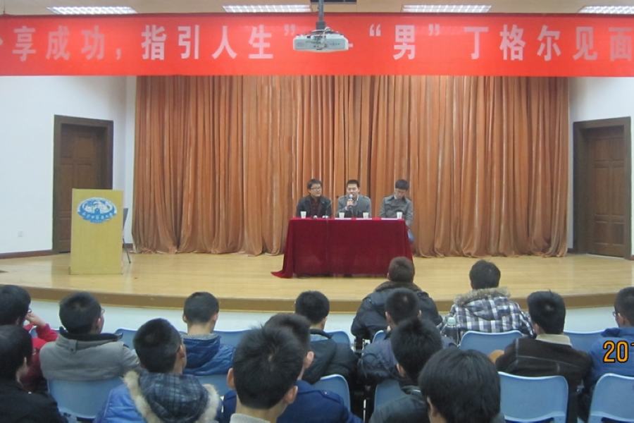 125晚,护理学院以“分享成功,指引人生”为主题的“男”丁格尔见面会在大学生活动中心107报告厅拉开帷幕,来自江苏省中医院心脏介入科男护宋兵战、南京市第一医院ICU团队男护徐淮金和我校2011级护理研究生葛冉三位我校护理学院优秀毕业生与在校全体男生齐聚一堂共话人生和畅想未来。