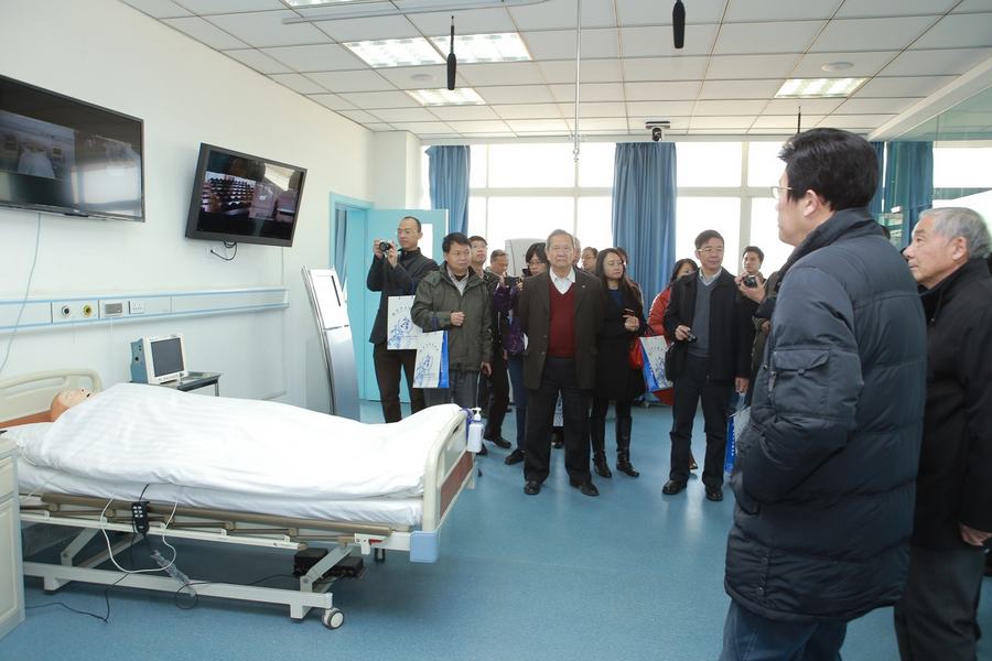 欢迎会后,访问团一行参观了我校的教学服务中心、床边教学多点互动教室和护理学院实验室。