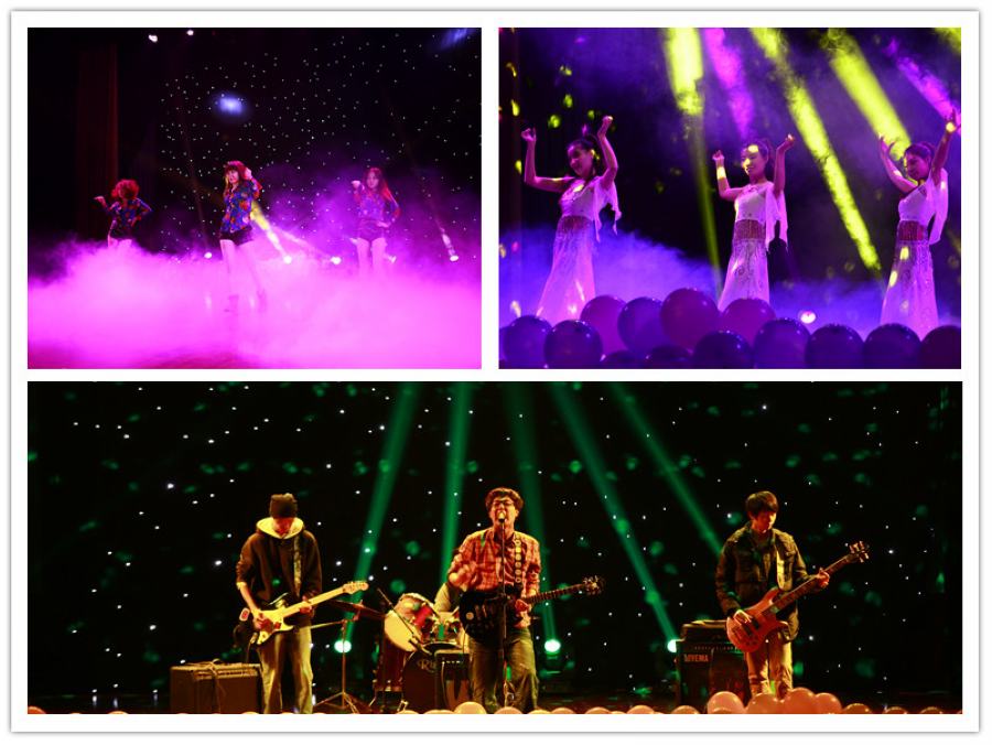晚会开始前,现场播放了参加此次风采大赛的研究生们的排练经历和内心历程,一幕幕画面让大家感受到了研究生们踏实认真的态度和青春自信的风采。硕士二班的强雨叶及其团队以一段炫目的爵士舞《Dance for You》拉开了晚会的帷幕,三个姑娘自信热情,每一个旋转、跳跃都展现了现代女孩的独特魅力。歌曲串烧串出了不同的风格、不同的风采,一曲《米店》静静地诉说内心的独白,《夜夜夜夜夜》唱出了款款深情,民族色彩浓艳的《高原蓝》给观众描绘了一幅大气隽永的画面,轻松自嘲的《把命都给了你了》给台下带来了不小的热潮,最后那曲温暖小资的《你是我心内的一首歌》,伴着男女主人公小舞曲的定格,为整个串烧画上了温馨的句号。郑侠同学的吉他独奏《天空之城》在漫天的彩色泡泡中把观众带入了梦幻世界。