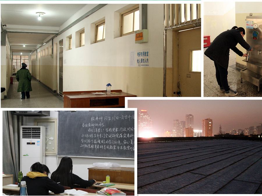 设立考研专用教室、走廊内安装监控设施,添置茶水炉,教学楼楼顶防水工程全部完成