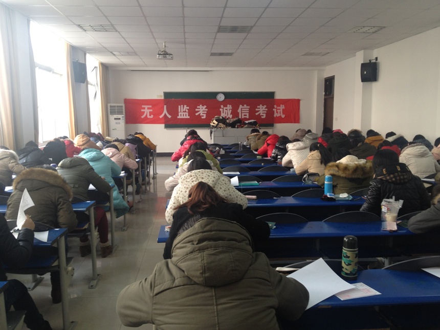 在以前的基础上,学院通过一系列措施,充分调动学生学习的主观能动性,践行诚信做人的优良品质,进一步加强学院学风建设。学院号召各班级召开主题班会,介绍无人监考形式和意义,同时听取同学们的不同意见,经过集体讨论,有12个班级全班一致同意申请无人监考。在《诚信考试》申请书签约仪式上,由班委宣读无人监考倡议书,全班同学签下了自己庄重的承诺。学院将为每个参加无人监考的同学建立诚信档案,符合要求的为其颁发诚信证书。 学院举办诚信考试交流会,参加过诚信考试的同学们与全院各班代表们畅所欲言,谈体会,谈触动,谈成长。在考试前,学院举行无人监考工作人员培训大会,解读工作人员职责,规范无人监考流程。