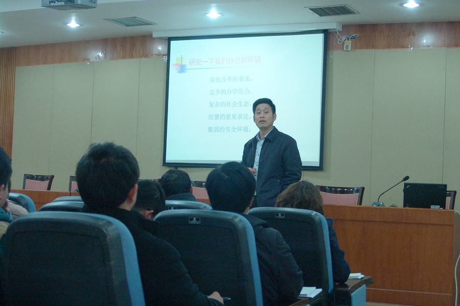 校党委王长青副书记、副校长以《辅导员成长之我见》为题,为辅导员们作了新学期首场专题讲座。王书记以“说在前面的话”开篇,对2013年的学生工作进行了简要回顾,以“积聚正能量,提高显示度”充分肯定了2013年我校学工战线同志的努力与付出。王书记在讲座中使用接地气的话语和生动鲜活的身边故事,阐述了自己对做好辅导员工作的理解。王书记认为做好一名辅导员,首先要认识自己当今所处的环境,其次还要研究自己的教育对象,最后要明确时代赋予自己的要求。王书记从 “至爱”、“ 至诚”、“ 至善”、 “至学”四个角度,阐述了自己对如何实现时代赋予当今辅导员的角色要求的理解。讲座最后,王书记用“时间都去哪儿了”和大家分享了他寒假期间所读的书目,勉励大家要惜时如金,多学习、勤思考、勇实践。整场讲座气氛热烈而轻松,内容丰富且翔实,与会人员认真聆听,兴趣盎然。