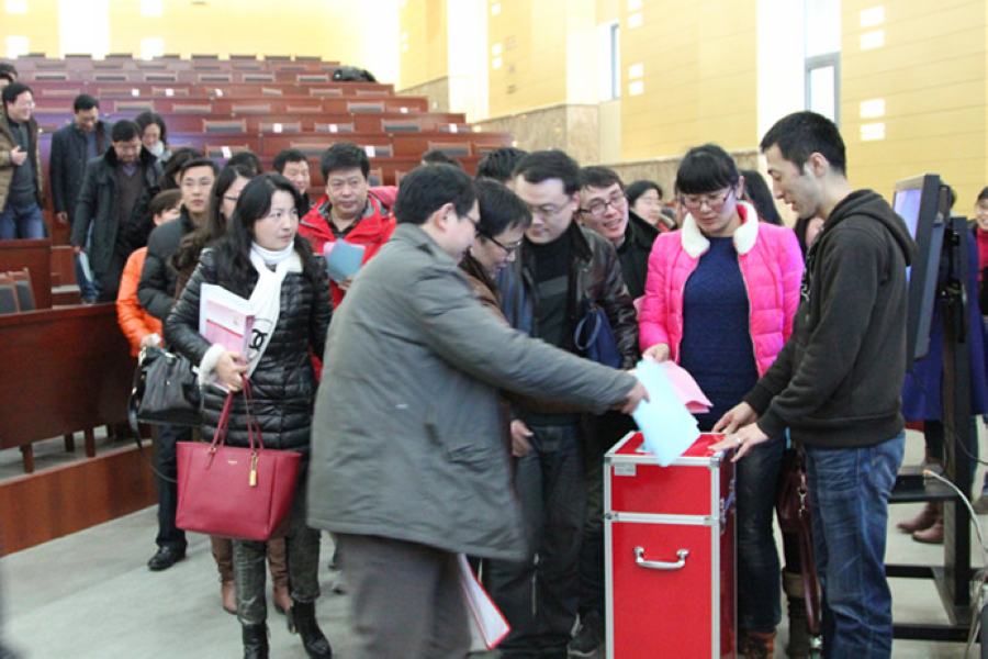 与会人员依次经过投票箱投出考核测评意见表