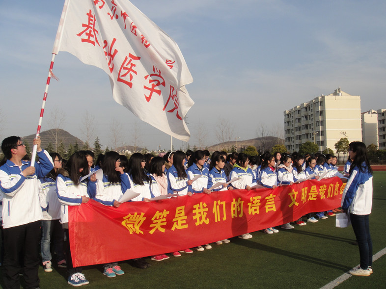 为全面提高学院学生的文明修养,响应学校号召,值此学校青年文化节之际,基础医学院开展了以“树文明新风,扬杏林文化”为主题的文明礼仪系列活动。作为系列活动的启动仪式,313日下午4点半 基础医学院全体2013级学生在我校东操场举行了文明礼仪宣誓仪式。