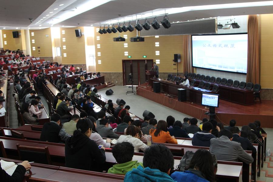 讲座伊始,王长青副书记谈到了建设一支结构合理、素质优良的科级干部队伍对学校发展具有重要作用,而公文写作能力又是每一个科级干部都应当具备的基本能力,他希望全校的科级干部能认真听讲,切实提高公文写作水平。