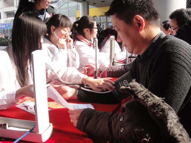 活动一开始,量血压组前就坐满了人,志愿者们仔细地为市民测量并报出结果。在志愿服务的过程中,药茶组的志愿者们也不停地为过往的市民们调制药茶,遇到有人询问功效或是其他一些医学方面的小问题,志愿者们也都给予了详细的回答。随着时间的推移,前来接受服务的市民越来越多,同学们也是马不停蹄,不辞辛苦,做得井然有序。义诊过程中很多市民咨询指出自己存在脊椎或腰酸背痛的现象,对此,推拿组的志愿者们使出浑身解数为他们进行推拿并不断地询问接受推拿的市民哪里还有酸痛感。按摩完成后,接受服务的市民们纷纷表示身体真的觉得轻松舒服了很多。许多市民闻之也纷纷赶来体验学生推拿的手艺,整个义诊活动过程中推拿组的志愿者们几乎就没有休息一下,一直尽心地为每一位前来体验的市民提高认真的服务,受到了周围群众的一致好评。