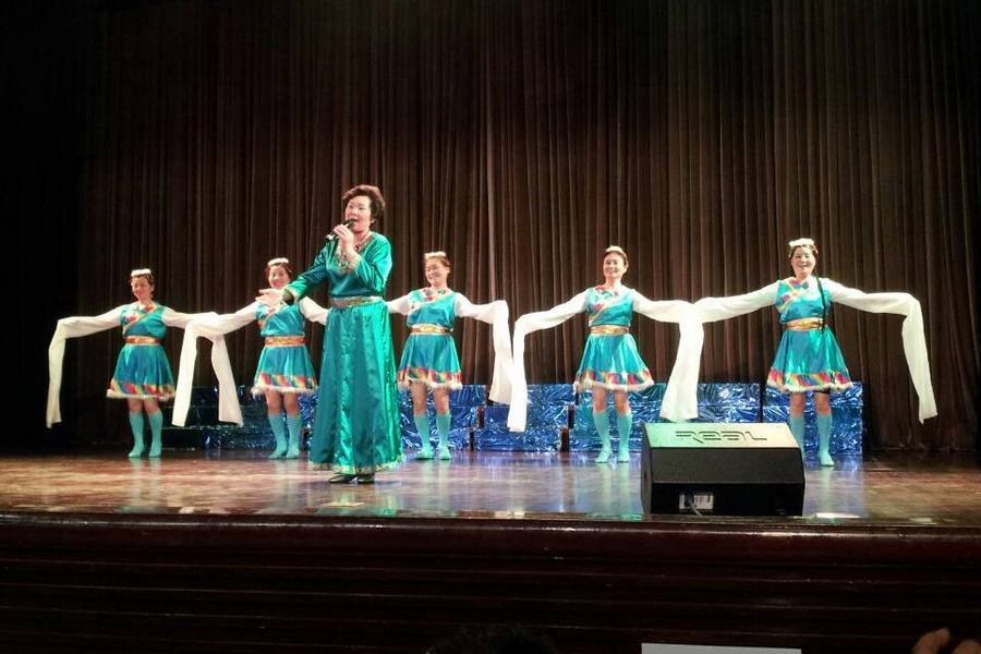 整场歌会演唱形式多样,铿锵有力的男声小合唱、婉转悠扬的女声小合唱、幽默风趣的男声四重唱、轻松欢快的女声三重唱、气势雄浑的混声大合唱将《中国梦》、《把一切献给党》、《隐形的翅膀》、《山楂树》、《深海》等一系列艺术歌曲演绎得精湛完美,演员们投入的表演和深情的演唱赢得了现场观众经久不息的掌声。钟声合唱团的老艺术家们还创新表演形式,在演出过程中穿插了服装模特走秀,看着她们随着音乐的节奏在舞台上自如地走场,范儿十足,全场观众为之感动,掌声欢呼声响彻整个小剧场。大学生艺术团的同学们也演唱了世界名曲《故乡的亲人》、《星星索》。由我校民盟在职支部盟员与合唱团老同志联合表演的混声小合唱,分别用英文、中文、日文唱出了心声《友谊天长地久》,将歌会气氛推到了新的沸点。演出在台上台下师生齐声合唱《同一首歌》的优美旋律中落下帷幕。